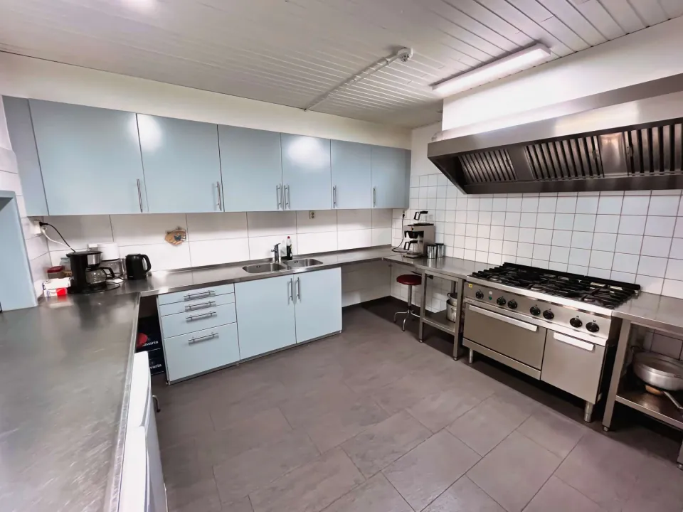 We beschikken over een ruime keuken met een fornuis, oven en twee koelkasten. Je hebt dus alle ruimte om jouw boodschappen te koelen en samen met je groep te koken.